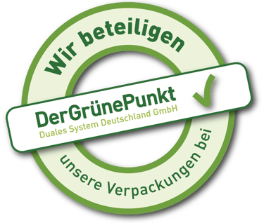 With this label we would like to show that we are a customer of Der Grüne Punkt - Duales System Deutschland GmbH in Germany and that our sales packaging for the German market participates in the dual system Der Grüne Punkt.