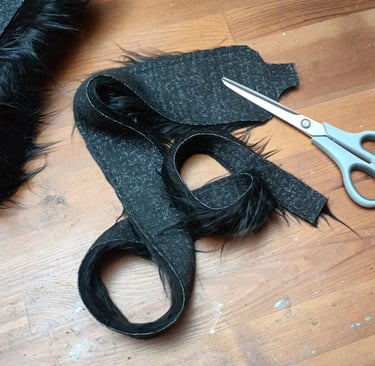 When the base color is completely dry it's time to add some fluffy stuff. If your're working with fur, measure the upper and lower surrounding and cut it like shown in the pic, but add a few millimeters in width.