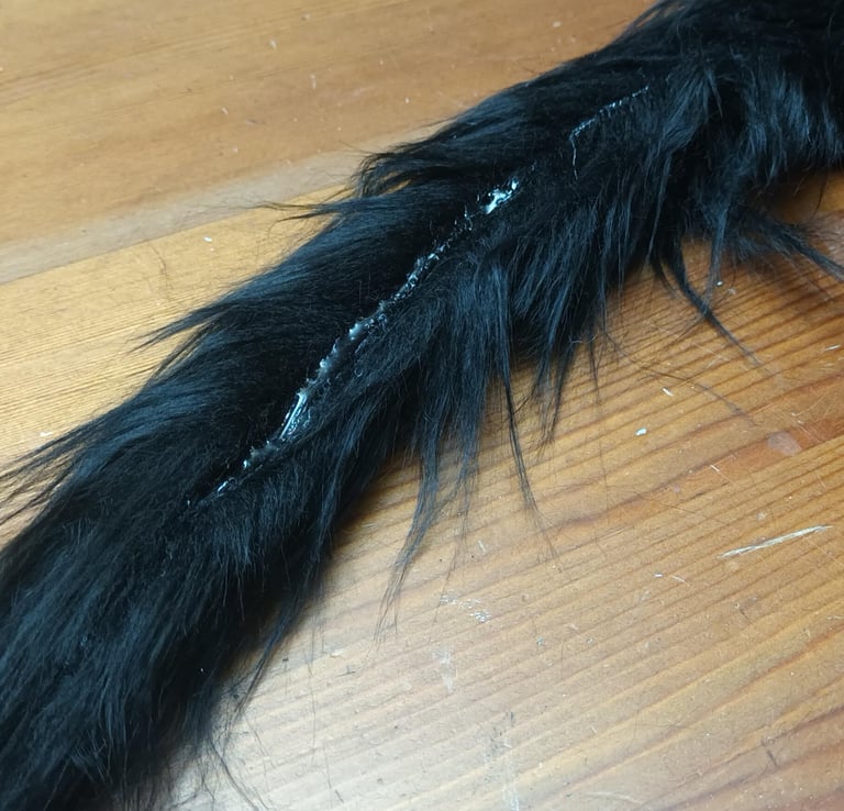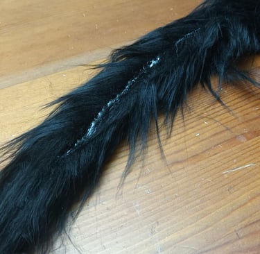 A gap at the seam easily occurs. This is where you will need to attach the small strips of fur if there is a larger gap. For smaller gaps, apply a thin line of hot glue and gently slide the fur over it from both sides alternately to hide it.