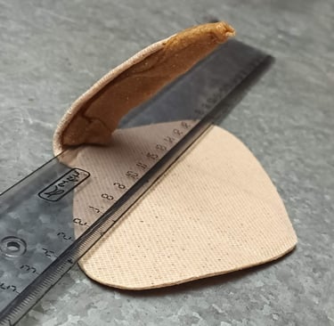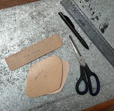 In this tutorial I show you how to build a tail which you can easily hang over the border of your trousers without the need to cut a hole in those. So cut out two times a small plate to hold the tail in line while wearing it and a strip to attach the tail itself to it out of Worbla. The millimeter doesn't matter here.