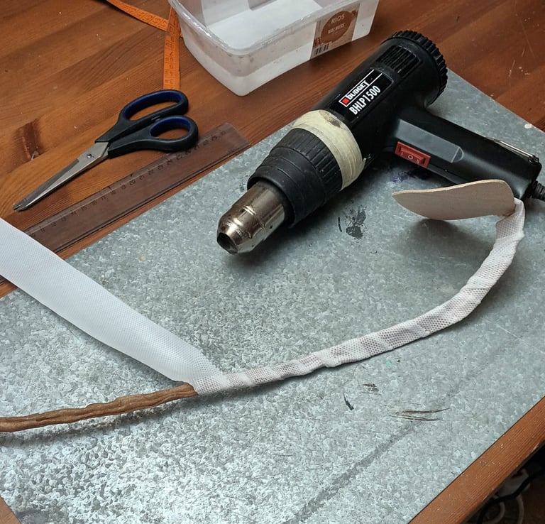 hot air gun, hot glue gun, brushes, sharp knife, adhesive tape