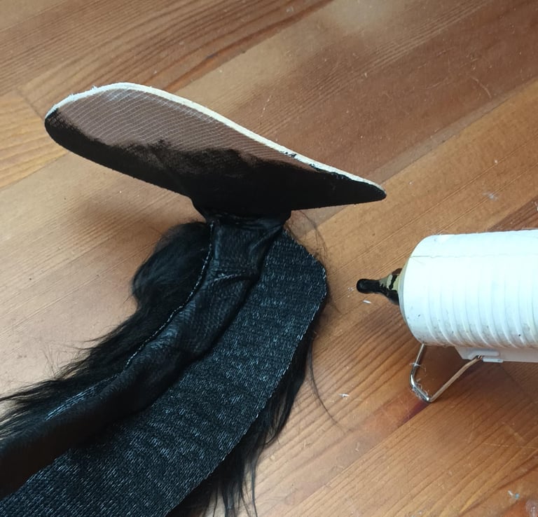 When applying the fur, always try to pull the hot glue gun away in the direction of the hairs, so there are fewer ugly glued corners of fur if a little glue goes wrong.