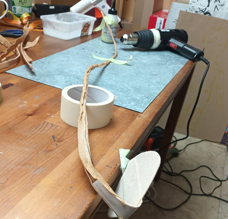 Heat up Worbla stripes to create the length of the tail. This is a great chance to use scrap parts!